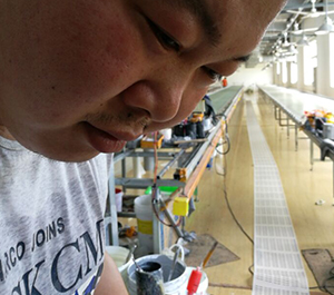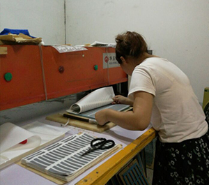 2.2 完成泡棉安裝后即可上機(jī)試切,將刀模刀面向上放于切割平臺(tái),并將預(yù)訂后的產(chǎn)品對(duì)位放于刀模上方,并觀察調(diào)整,使各條刀均位于產(chǎn)品圖案之中間。
